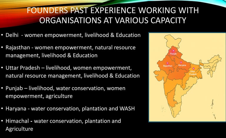 The founder brings extensive professional experience, having worked with a range of organizations across diverse roles and capacities. This background includes strategic planning, program implementation, stakeholder engagement, and field-level execution, contributing significantly to social development initiatives. Such experience ensures a deep understanding of grassroots challenges and institutional frameworks.